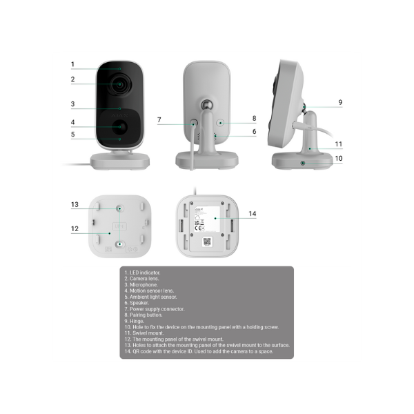 A Ajax IndoorCam 4MP é uma câmara de videovigilância sem fios concebida para interiores. O seu sensor de vídeo CMOS de 4 MP proporciona imagens nítidas com uma resolução máxima de 2688×1520, tecnologia HDR e visão nocturna por infravermelhos de até 8 metros. Também incorpora inteligência artificial para a deteção de objetos, distinguindo entre pessoas, animais de estimação e veículos.