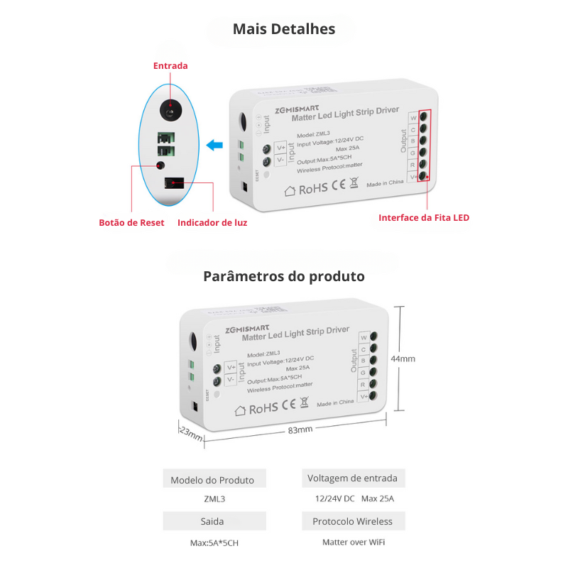 Controlador de tira RGBCW - Matter over Wi-Fi - Tuya / Smartlife