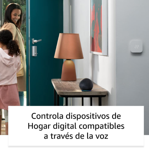 - Mantenga su hogar cómodo: controle los dispositivos domésticos inteligentes con su voz y configure rutinas activadas por los sensores de temperatura integrados de su Echo Dot. Cree rutinas para encender automáticamente un ventilador inteligente cuando la temperatura de su hogar supere el umbral que usted establezca.