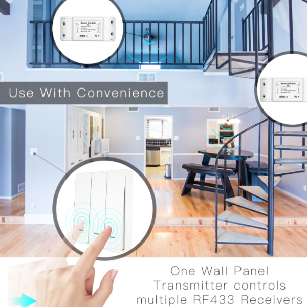 Este interruptor de pared virtual se comunica a través de RF de 433 Mhz y le permite encender y apagar luces, persianas y/o ejecutar escenas inteligentes.