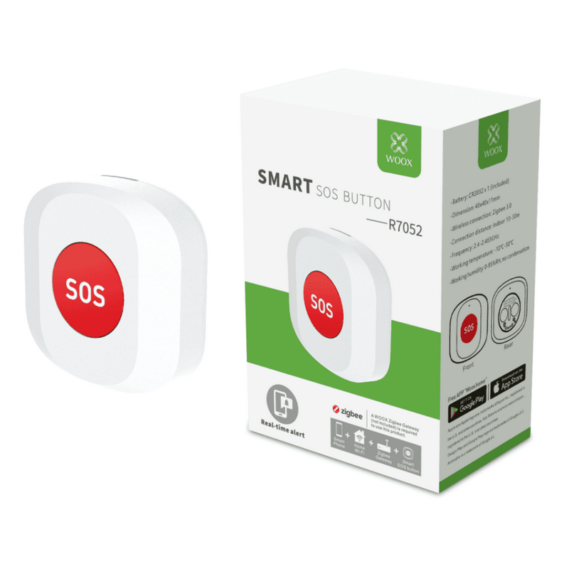 O botão SOS inteligente é o seu componente de emergência. O botão é sem fios e é fácil de emparelhar com o seu WOOX Home Security configurado. Ele irá ativar o alarme e enviar a notificação para o seu telefone quando o botão for pressionado e pode definir ruídos adicionais quando você tiver uma sirene interior conectada. O botão SOS pode ser fixo ou funcionar como um alarme de pânico móvel em qualquer lugar da sua casa ou escritório. Para usar este botão SOS inteligente, é necessário um gateway WOOX Zigbee, como o R7070 (não incluído).