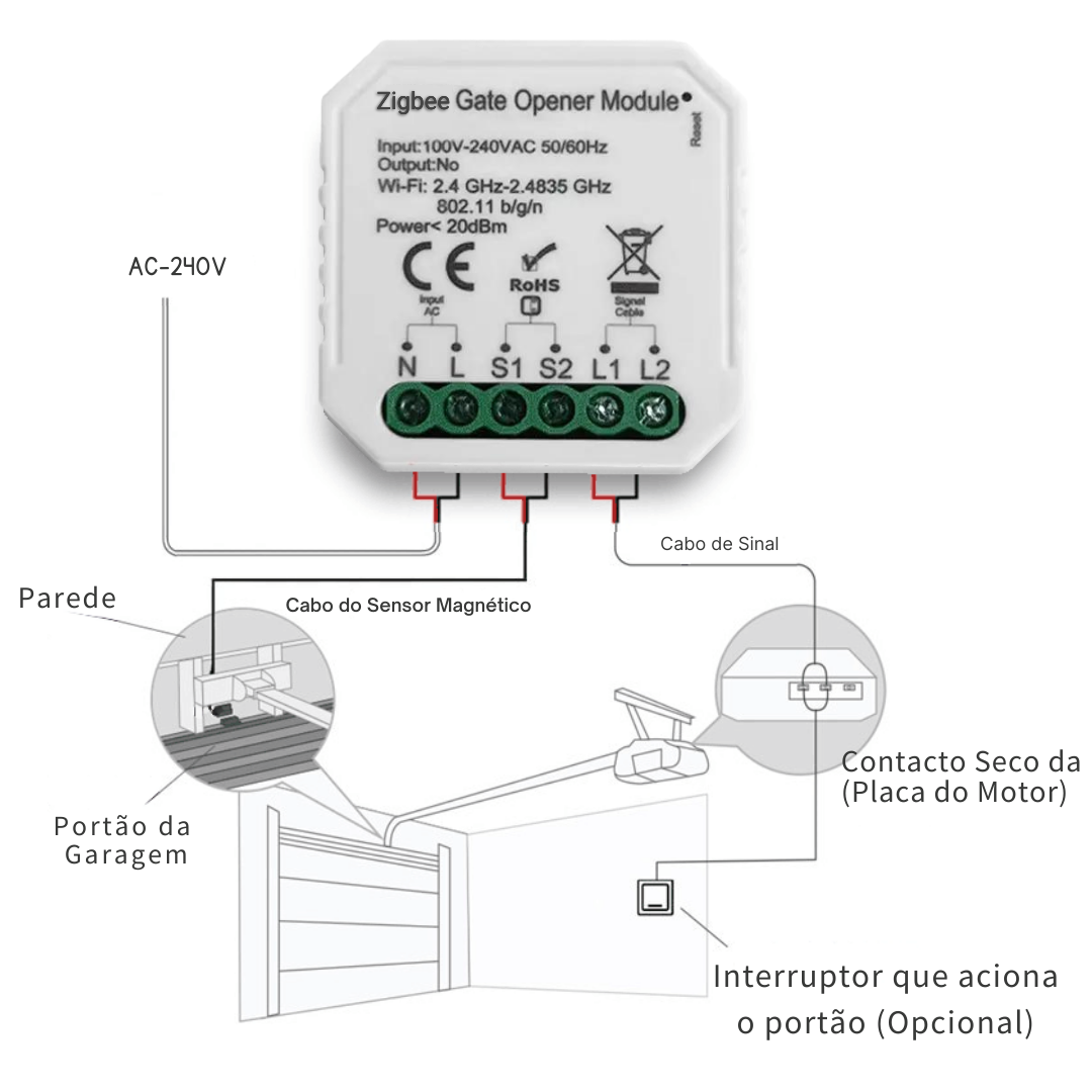 - Módulo para abertura de porta e portão de garagem Zigbee;
