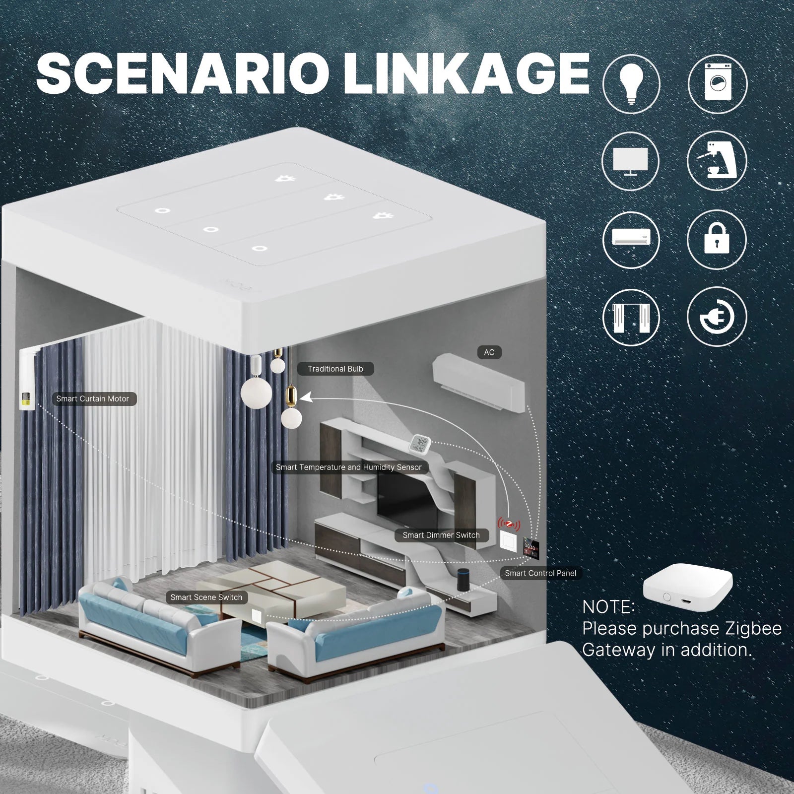 Este interruptor Dimmer é uma adição sofisticada para qualquer casa inteligente. Este switch requer um Tuya ZigBee Gateway Hub e fio neutro, com suas opções DIMMABLE, controle facilmente suas luzes com funções de ligar/desligar, aumentar o brilho e diminuir a intensidade. Aproveite a conveniência do controle de voz usando Alexa/Google Home ou gerencie remotamente suas luzes através de nosso aplicativo fácil de usar. Não há necessidade de se preocupar com a comutação, pois o recurso de associação de múltiplos controles permite vincular vários interruptores dimmer perfeitamente. Com o recurso Power-off Memory, você pode experimentar funcionalidade ininterrupta em todos os momentos. Eleve o seu sistema de iluminação doméstica hoje e adote conveniência e eficiência energética incomparáveis!