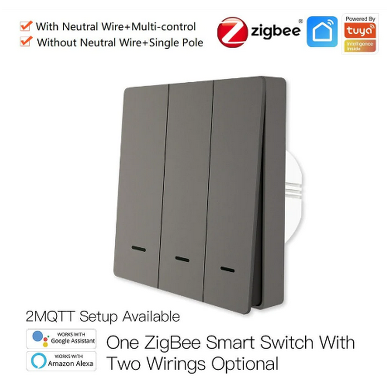 Interruptor Push AMCD - 3 TECLAS - Zigbee 3.0 - CINZA - Tuya / Smartlife - Funciona c/ ou s/ Neutro