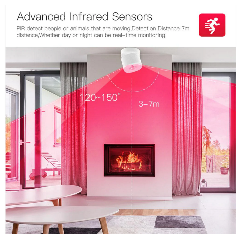 Monitoramento remoto em tempo real: sempre e onde quer que você esteja, uma vez que o PIR detecte pessoas ou animais em movimento, você receberá uma notificação push por smartphones no aplicativo Tuya/MOES. Mantenha sua casa segura o tempo todo. Quando houver movimento detectado, as notificações de alerta serão enviadas para o seu telefone imediatamente, você pode estar ciente do que está acontecendo em casa mesmo quando estiver ausente.