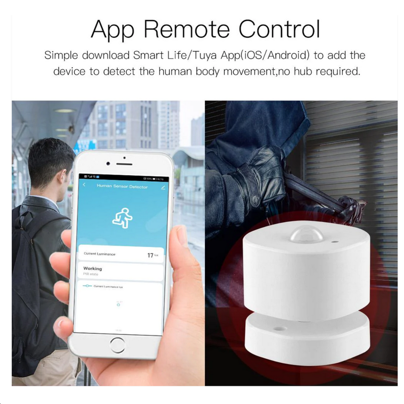Alarme de ligação inteligente com mais sensores: quando você se levanta à noite, o PIR detecta seu movimento, a luz acende automaticamente. Você pode descobrir cenas mais inteligentes com os dispositivos inteligentes Tuya para se satisfazer em grande medida. Você pode até rastrear o histórico das atividades do sensor com o aplicativo compatível.
